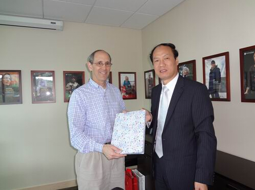 包院长一行与西华盛大学商学院院长Brian K. Burton教授举行工作会谈后交换纪念品