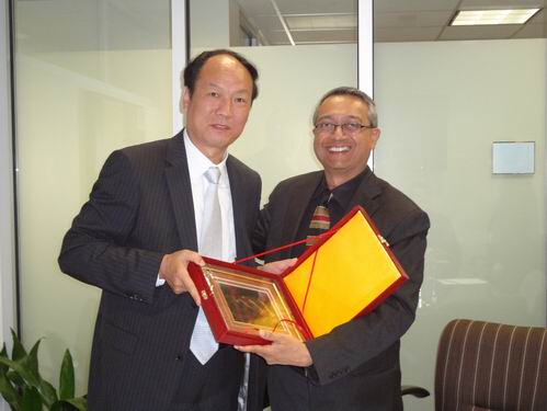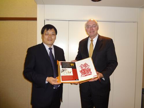 包院长与马克.汉菲尔德政府学院院长Ronald Tammen教授互致纪念品