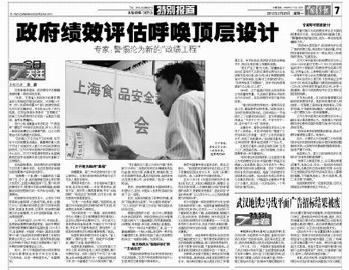 【中国青年报】政府绩效评估呼唤顶层设计