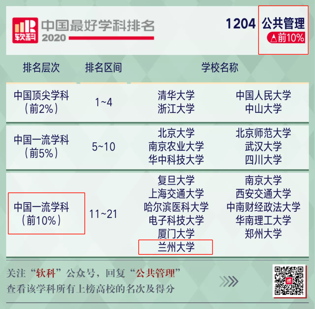 喜讯!兰州大学公共管理学科位列2020软科中国最好学科排名前10%